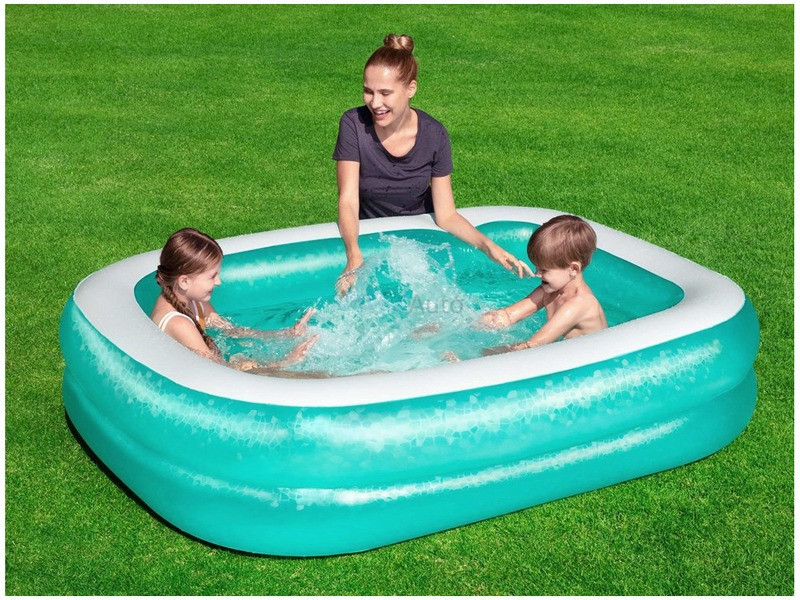 Az egész család lubickolhat a szögletes családi medencében! A Családi medence akár két felnőttnek és gyereknek is jó a pancsoláshoz a nagy melegben. A nagy medence több kamrás, biztonsági szeleppel van felszerelve, könnyen felfújható és leereszthető. A medence erős PVC-ből készült, nagyon tartós, ellenáll az időjárásnak. A készlet egy erős, öntapadó javítófoltot is tartalmaz. Felfújt méretek: 200 x 146 x 48 cm.