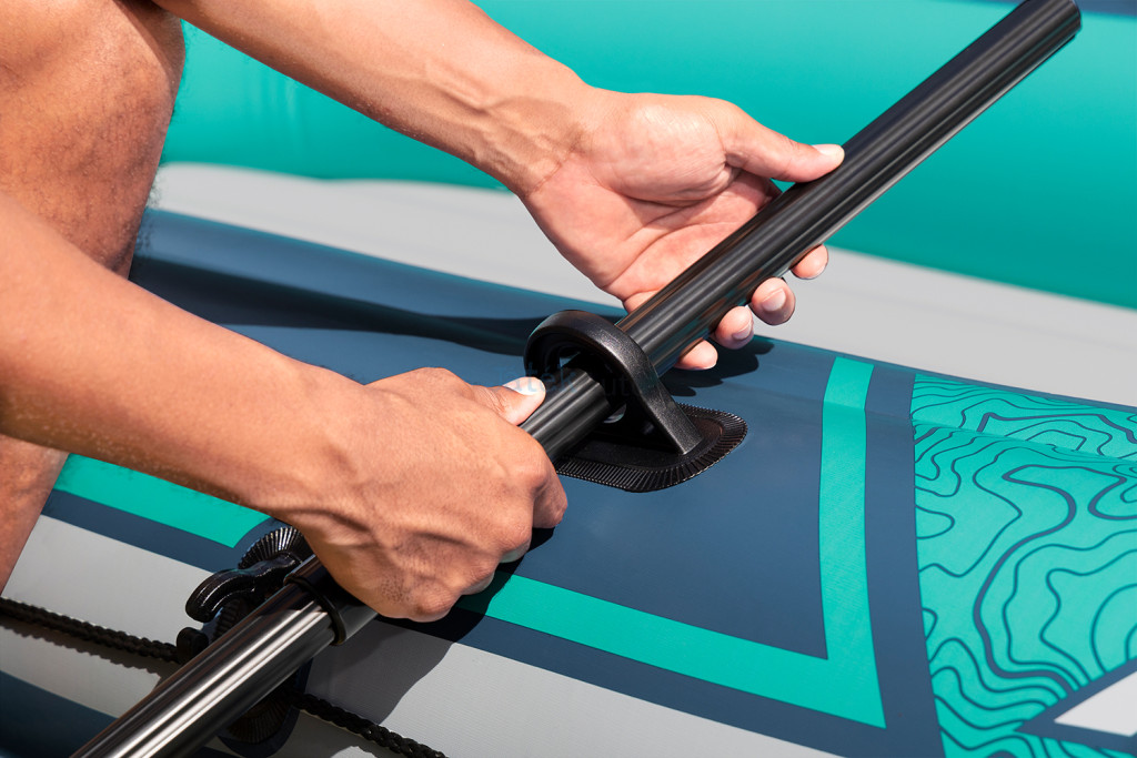 Bestway 61154 Hydro Force Trek X3 csónak 294 x 137 x 39 cm. Tartozékok: 1 pár 124 cm-es evező #62015; Air Hammer™ kézi pumpa #62003, javítási foltok.