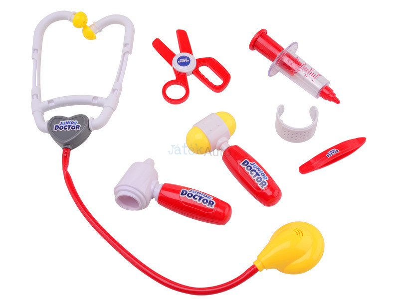 Doktor szett. Ez a játék megadja neked az orvoslás élményét! Meggyógyíthatod állatkáidat, vagy babáidat. A táskában találsz fecskendőt, csipeszt, sztetoszkópot, ollót, a készlet 7 részes. Anyaga: műanyag, könnyen tisztán tartható.