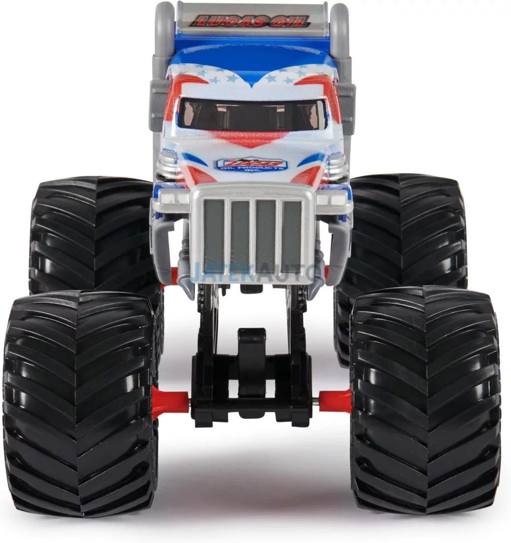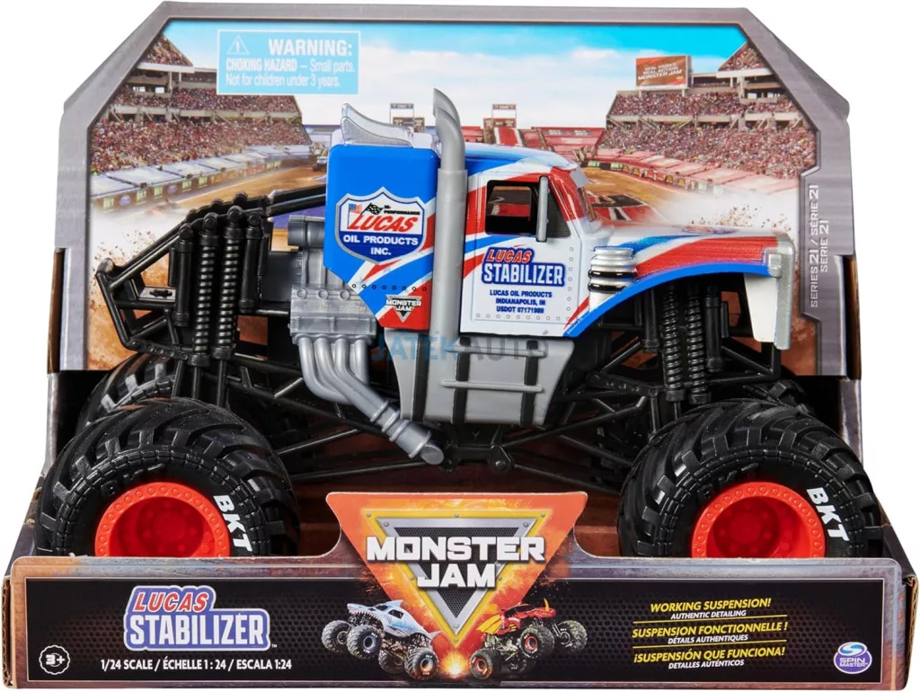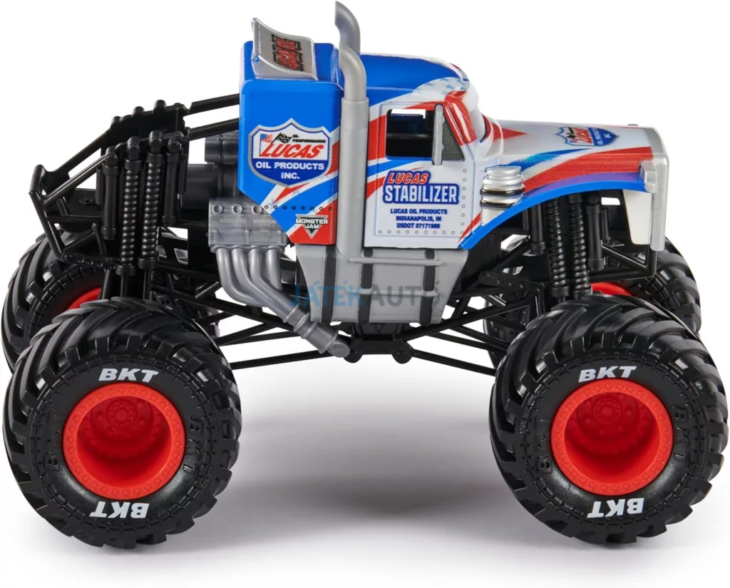 A Monster Jam - Lucas Stabilizer Monster Truck egy 1:24 méretarányú játékautó / modell autó rugalmas felfüggesztéssel, FÉM karosszériával. A Monster Jam - Lucas Stabilizer Monster Truck hossza: ~20 cm, méretaránya: 1:24.