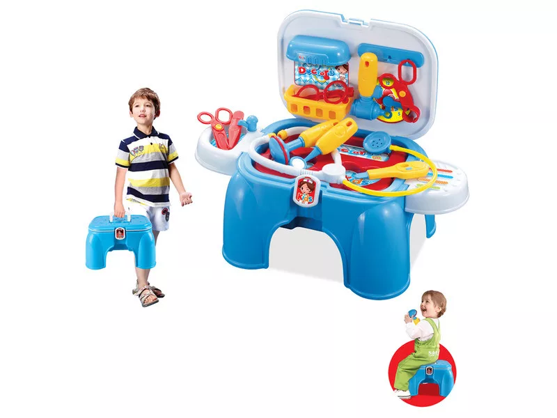 Ültesd le a beteget, vizsgáld és gyógyítsd meg! Az Orvosi készlet ülőkében mindent tartalmaz, amire egy felkészült doktornak szüksége van. A műanyag eszközökkel meg tudod vizsgálni a pácienst, a sztetoszkóppal hallgasd meg a szívverését! A reflexeket, a lázát, a látását és a fogait is végig tudod nézni az eszközökkel, és ha sikerült rájönnöd, hogy milyen betegségben szenved, akkor elkezdheted a kezelést. Az Orvosi készlet ülőkében műanyagból készült, könnyen hordozható. Az ülőkére leültetheted a beteget, a fedelében tudod tárolni az orvosi műszereket. Méretek: 39 x 19 x 26 cm.